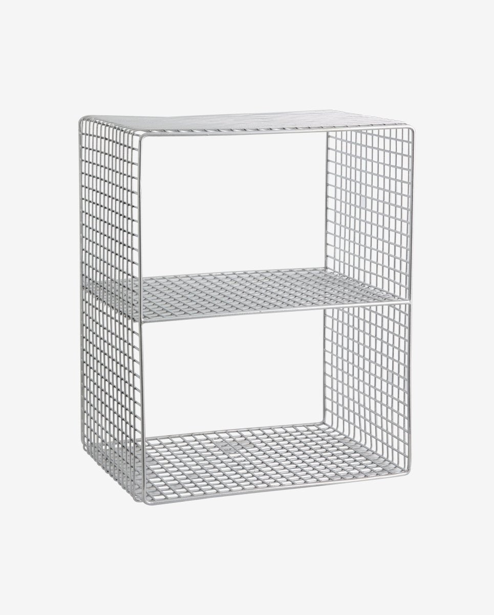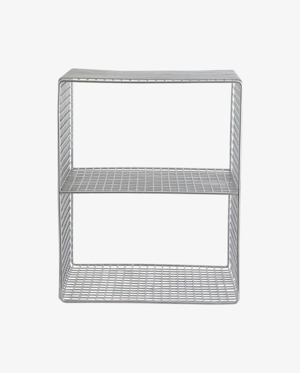 Den enkle og funktionelle hylde er fremstillet i et metalgitter med en forkromet overflade. Det modulære design gør, at du nemt kan tilpasse den efter dit behov.