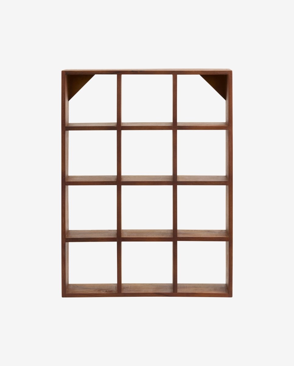 Skab det perfekte display for dine smukkeste kopper eller nipsgenstande med OSSA cup shelf i mangotræ. Den kvadratiske hylde har 12 symmetrisk fordelte rum, som giver plads til både funktion og æstetik.