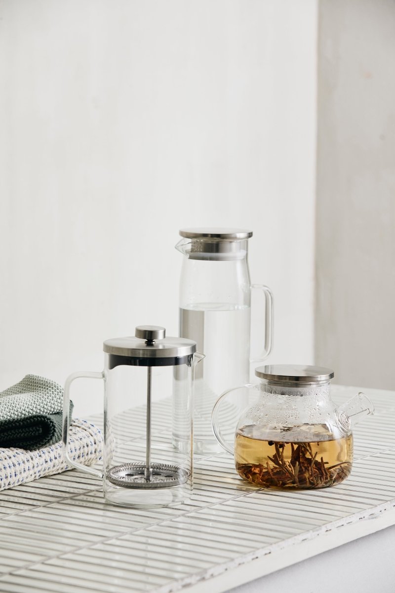 Det elegante kromlåg giver kanden et moderne udtryk og kombinerer både praktisk funktionalitet og dekorativt design, der passer perfekt ind i ethvert hjem med sit tidløse udseende.