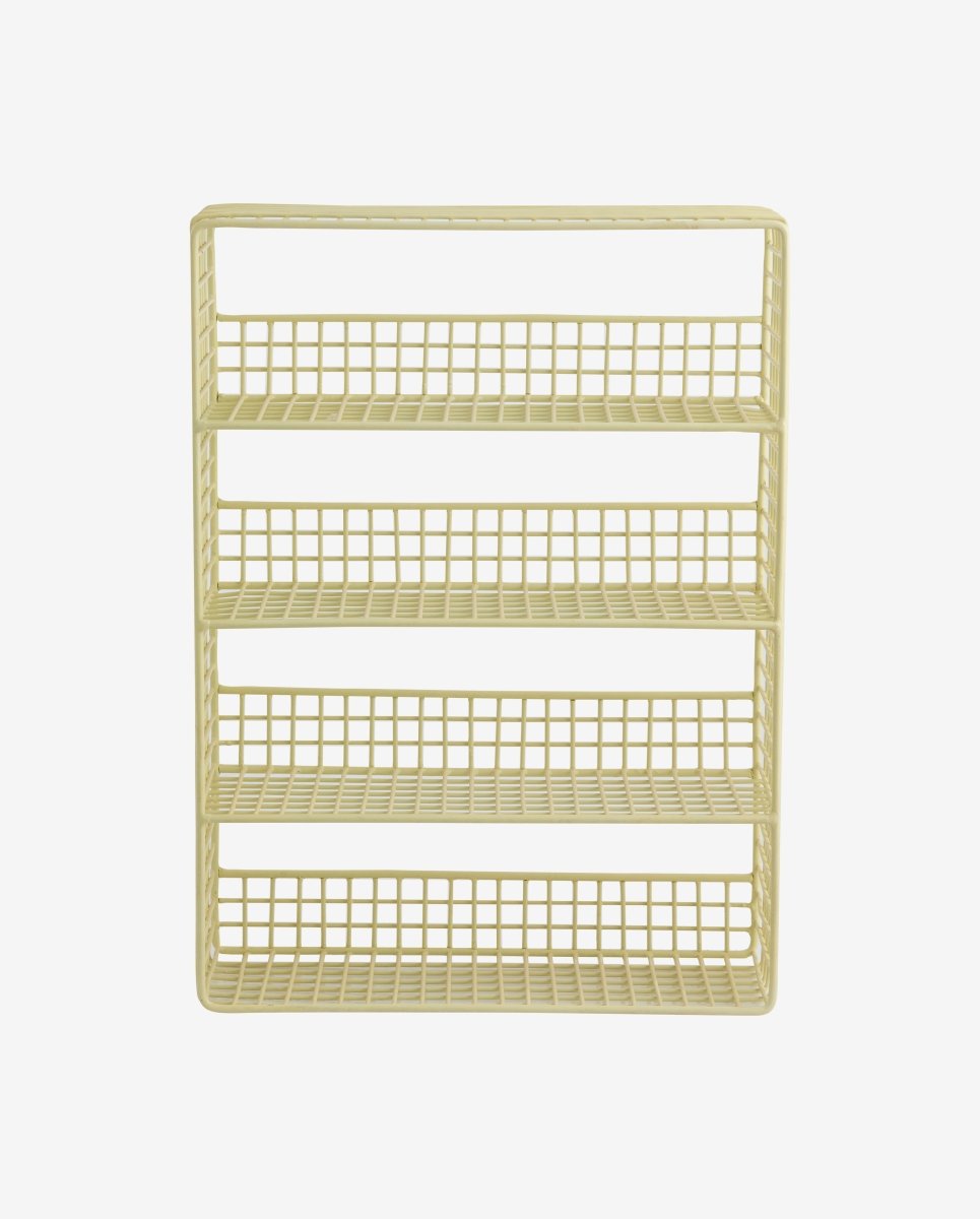 KIKORI-hylde er femstillet i et metalgitter, med en gul pulverlakeret overflade.