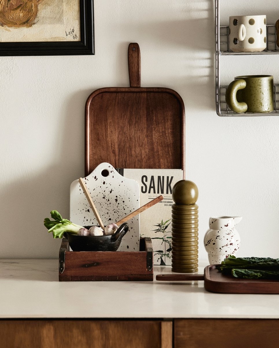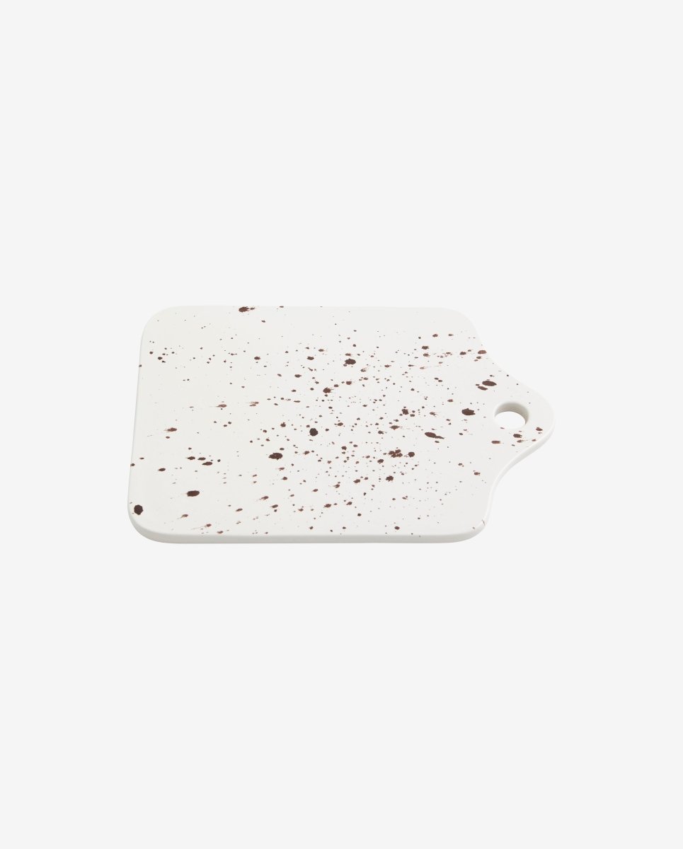 Serveringsbrikkens karakteristiske mørkebrune splash mønster tilføjer et legende og samtidig sofistikeret præg til produktet. Brug serveringsbrikken til små anretninger eller serveringer, og gør din borddækning ekstra dekorativ.