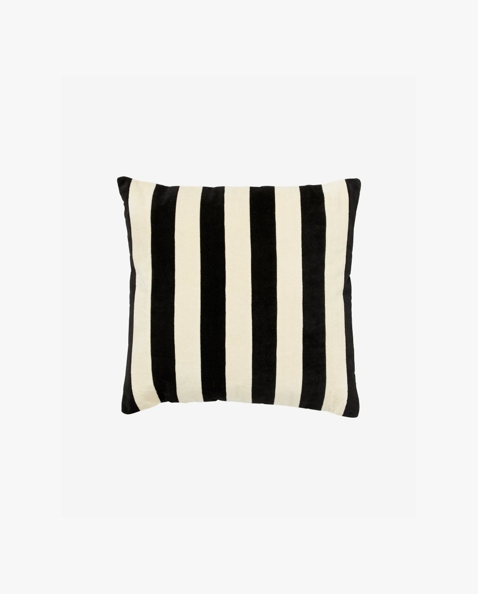 ALHENA pudebetræk med et stribet design i farvekombinationen sort og hvid. Et moderne og stilren pudebetræk, som kan indgå ethvert hjem. Med sit klassiske og tidsløs design, kan ALHENA bruges i stuen og soveværelset. Pudebetrækket er sort på bagsiden med en skjult lynlås.