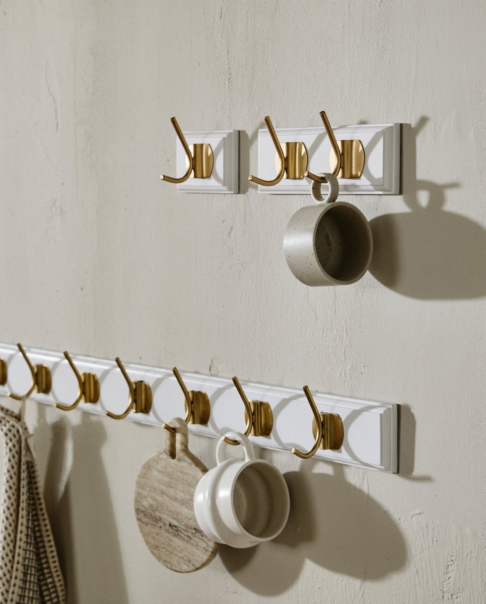 EDGY knagerække i træ med 6 messing knager - 60 cm - hvid