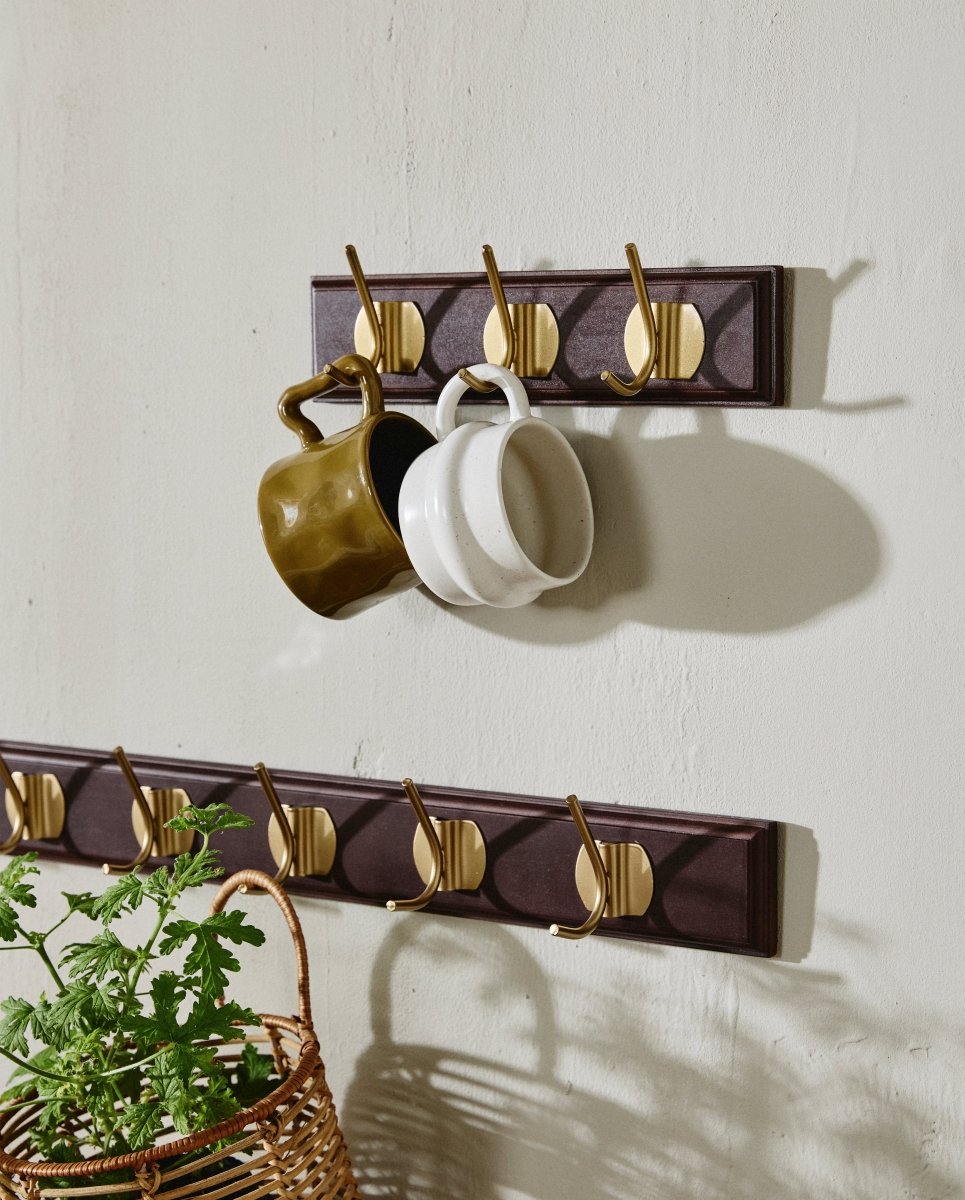 De markante kroge giver god plads til jakker, tasker og accessories og tilføjer samtidig et grafisk element til væggen. Et enkelt og praktisk design, der gør organisering til en æstetisk oplevelse.