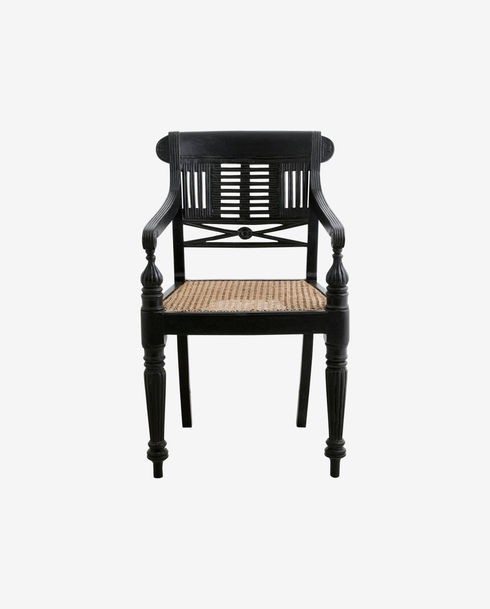 TAMBO spisebordsstol som er lavet i træ med et flettet sæde, er et mesterligt eksempel på autentisk håndværk. Med udskårne detaljer udstråler den en tidløs elegance og charme. Stolen kan tilføje karakter til ethvert spiseområde eller hjørne i din indretning.
