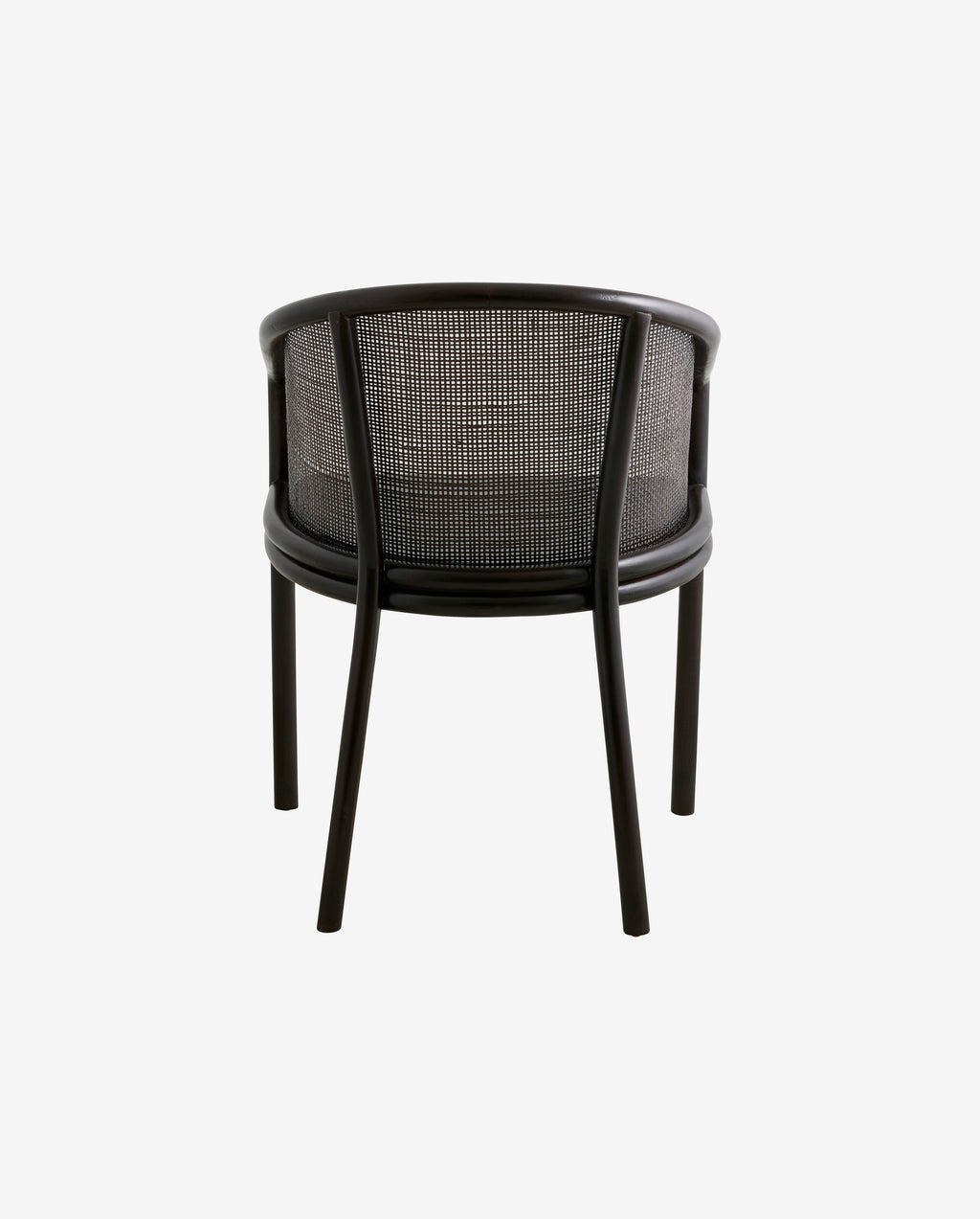 Flot spisebordsstol i et enkelt og klassisk design. Stolen er fremstillet af poleret teaktræ og med ryg i flettet rattan.